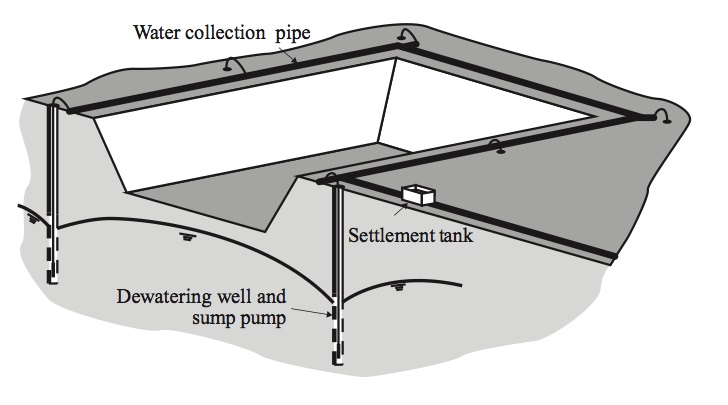 Dewatering involves controlling groundwater by pumping, to locally lower groundwater levels in the vicinity of the excavation. The simplest form of dewatering is sump pumping, where groundwater is allowed to enter the excavation where it is then collected in a sump and pumped away by robust solids handling pumps. Sump pumping can be effective in many circumstances, but seepage into the excavation can create the risk of instability and other construction problems.